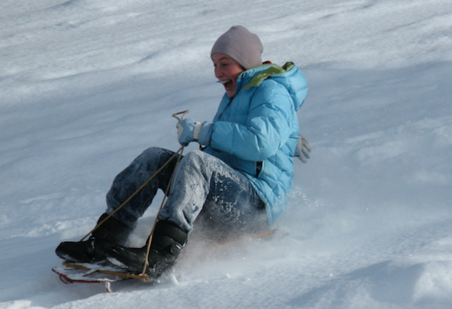 That was in 1966, the year we were married. I have great memories of sledding when I was a kid in College Point, New York, climbing to the top of a hill in a vacant lot, and zooming down on my sled into the street below. Marleen recalls that her dad build a big toboggan for her and her siblings living on the farm in Adair, Iowa. And she had her own sled, the real kind with steel runners that were steerable.