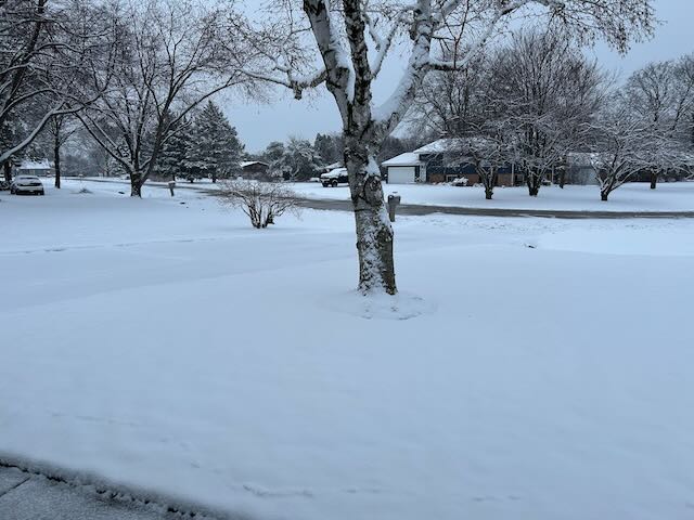 Here’s another picture, taken this morning. They say it’ll accumulate to six inches or more.